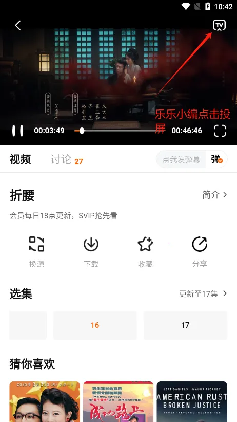 2、然后找到自己想要投屏的电视剧,点进去