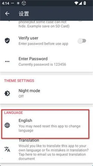 2、滑到到最下面,点击ENGLISH。