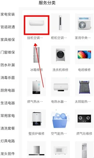 3、选择自己想要维修的东西,例如挂机空调维修;