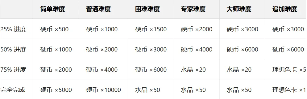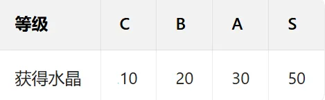 1)玩家等级提升:每次升级可获得 50 个水晶,每升级 10 级可额外获得 500 个水晶。