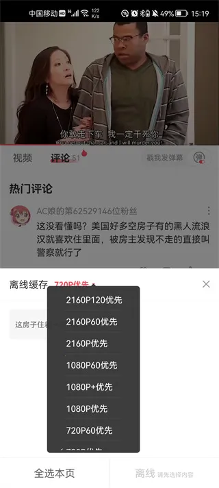 5、选择好清晰度后,点击底部右下角的离线,就可以缓存视频了。