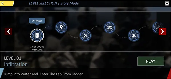 游戏玩法简单,打开游戏选模式,选已解锁关卡点击 play,进入游戏按左上角任务要求完成,如拾取注射器给自己注射、拾取武器破解门密码等。随着关卡推进有敌人加入,需击杀敌人避免受伤。它有众多模式关卡,武器枪械丰富,场景精彩多样,光影音效配合营造紧张氛围。丰富模式与装备让玩家以智取胜有成就感,第一人称代入感强,战斗体验新奇独特,值得下载尝试。