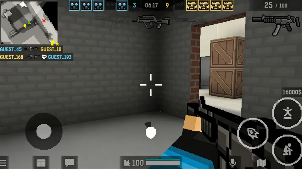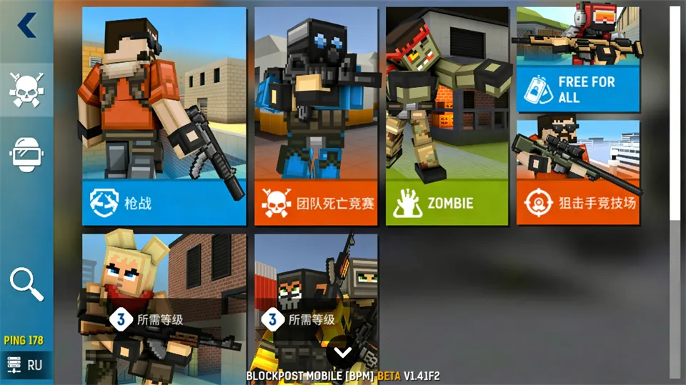 想体验紧张刺激的第一人称射击手游吗?blockpostmobile绝对能满足你!它是一款像素风射击游戏,玩法类似CS。玩家扮演训练有素的士兵,在各种地图参与5v5对抗,有爆破、团队死斗、占点等多种经典PVP模式。这里采用公平竞技机制,无属性碾压装备,武器库超丰富,能自由搭配配件打造专属枪械。新手攻略简单易懂,进入游戏后点击左侧开始,选喜欢的模式,比如枪战玩法,再选阵容就可以开战啦。战斗中死亡会在基地重生继续对战,左上角小地图可快速定位。新重生士兵有护盾保护,冲进对方基地别硬刚。在规定时间内击杀数先达10次的阵容获胜。游戏亮点满满,有多种不同类型武器库,可升级的五十多种型号武器,还有高级武器改造,能定制适合各种口味的枪支。激战之余还能用积分买新角色箱子和皮肤,包括传奇皮肤哦!快来下载体验吧!