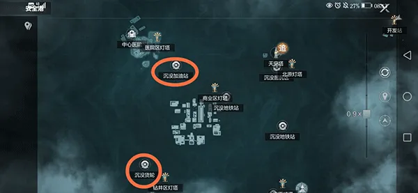 下面这张图中,红圈标注的地方,就是沉没加油站中会刷新花岗岩的地点。(绿圈标注的地方是气泡海鞘所在地)然后根据刷新点间的距离,来回的路程以及物资刷新的时间,我建议各位净化者通过以下路线进行挖矿。