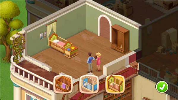 通关后解锁主线剧情,优先在婴儿房放置婴儿床,这是后续所有育儿互动的起点。